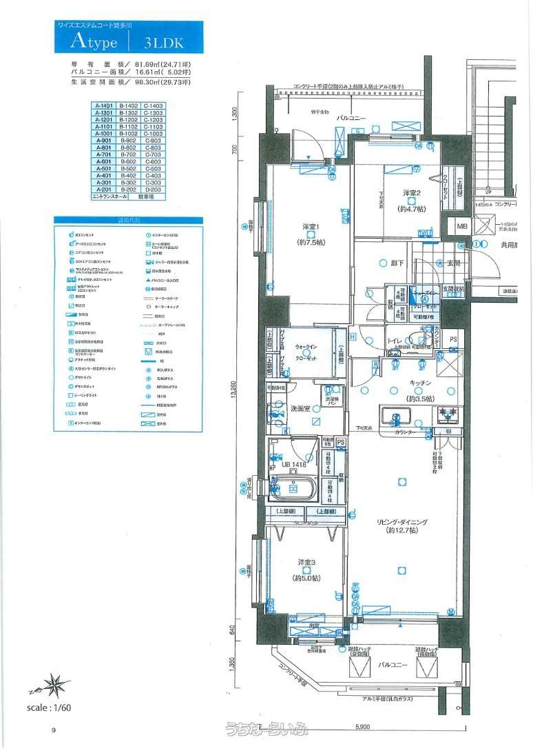 | 間取り | 3LDK ( 洋4.7 洋5 洋7.5 LDK12.7) | ||