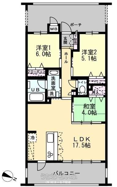 | 間取り | 3LDK ( 洋6 洋5.1 和4 LDK17.5) | ||