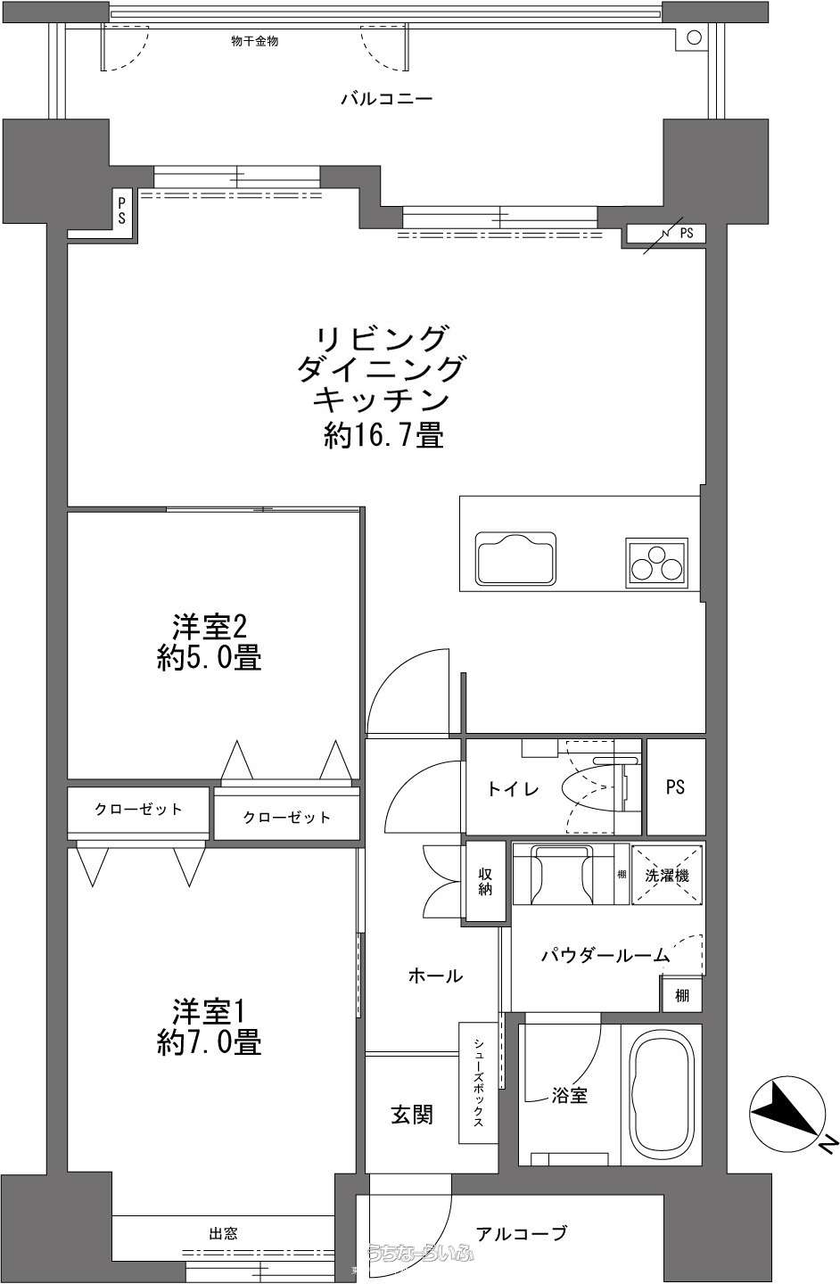 | 間取り | 2LDK ( 洋7 洋5 LDK16.7) | ||
