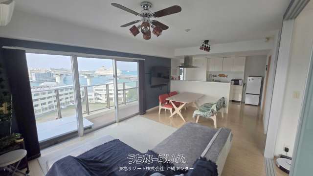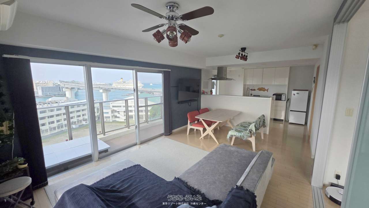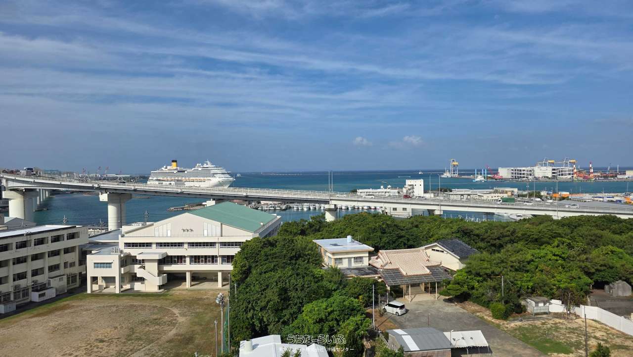 オーシャンビュー2LDK!2面開口のLDKから泊港へ寄港する客船を望みます