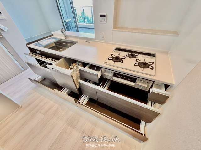 | キッチン | 給湯 、 ガスコンロ 、 対面式キッチン(カウンターキッチン) 、 システムキッチン 、 コンロ3口以上 |