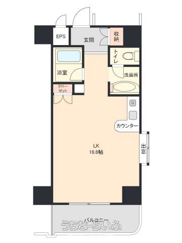 | 間取り | 1ルーム ( 洋16.6) | ||