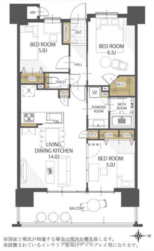 | 間取り | 3LDK ( 洋6.5 洋5 洋5 LDK14 ※ウォークインクローゼット、対面キッチン、各居室収納あり) | ||