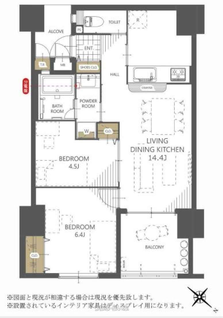 | 間取り | 2LDK ( 洋6.4 洋4.5 LDK14.4 ※リフォーム済、各居室収納あり) | ||