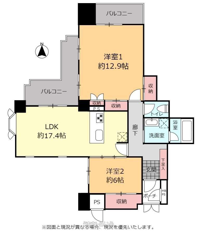 | 間取り | 2LDK ( 洋12.9 洋6 LDK17.4) | ||