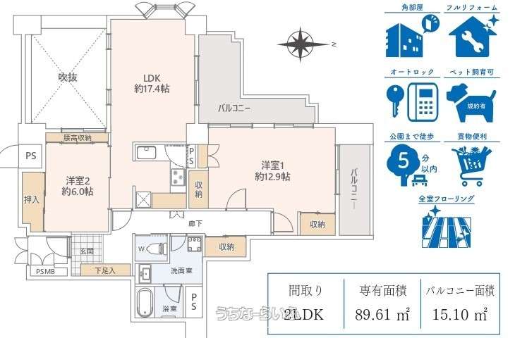 | 間取り | 2LDK ( 洋12.9 洋6 LDK17.4) | ||