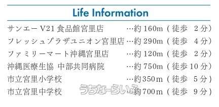 ・「うちなーらいふ」は、より正確な情報の提供を心がけておりますが、物件情報に誤りがある場合は、ご連絡をお願い致します。