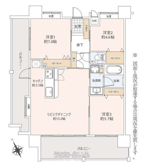 | 間取り | 3LDK ( 洋7 洋5.7 洋4.6 LDK16.7) | ||