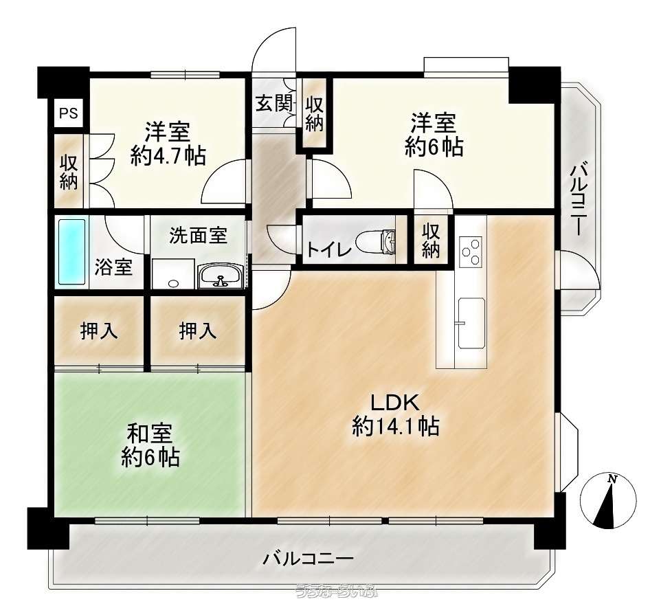| 間取り | 3LDK ( 洋6 洋4.7 和6 LDK14.1) | ||
