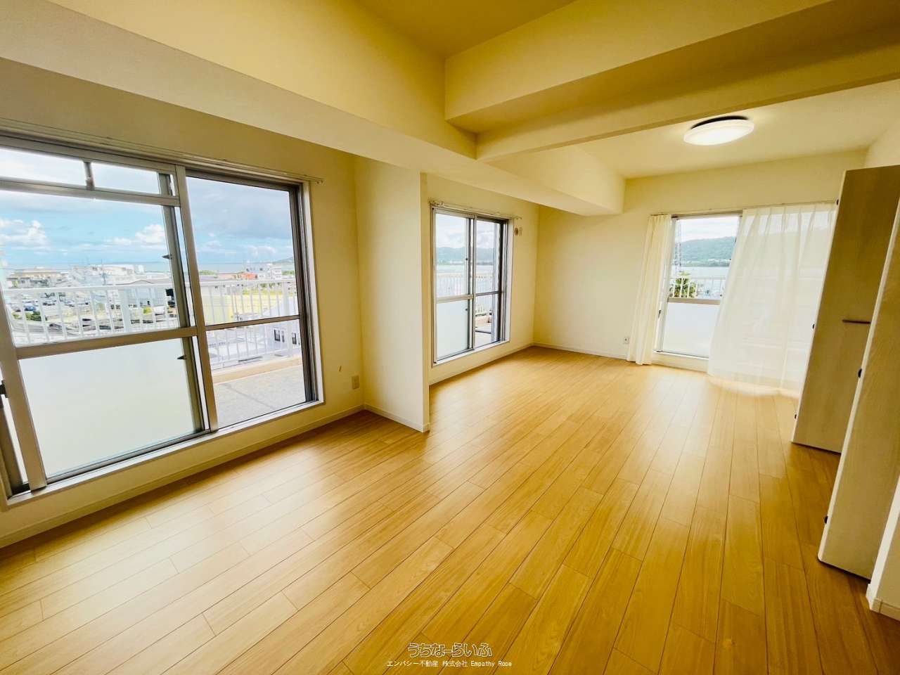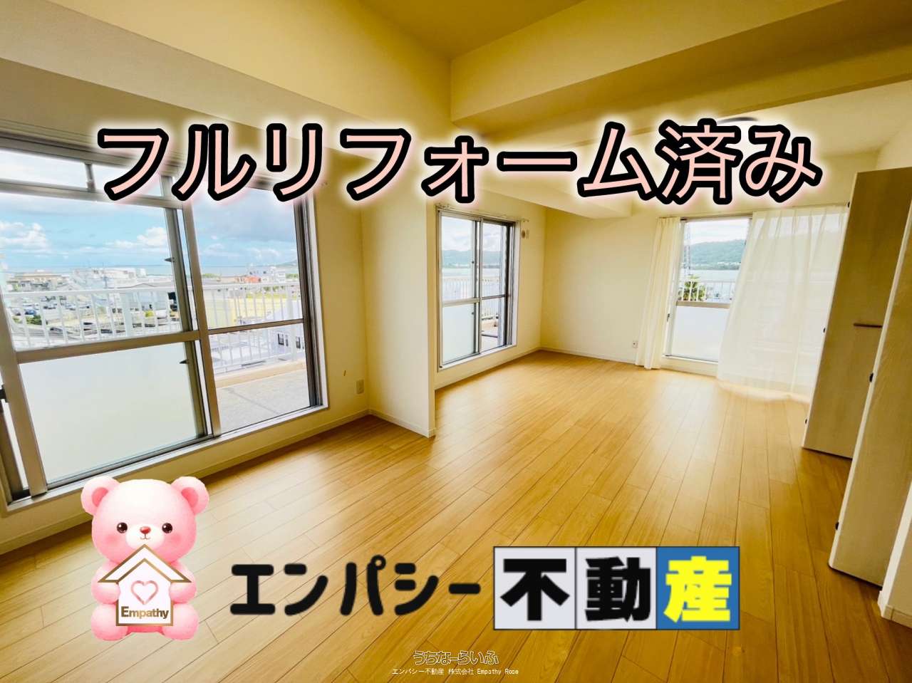 【ニューライフ佐敷 】 505号室 ※100万円値下げしました。フルリフォーム終わりました!ご内覧いただけます。車で3分圏内にスーパー多数🚙 生活に便利な立地🏠2面バルコニーからパノラマオーシャンビュー🌊駐車場2台確保可能🚗 73㎡角部屋