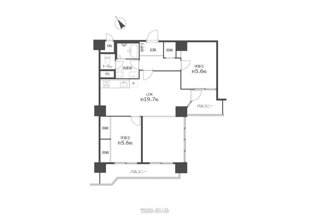 | 間取り | 2LDK ( 洋5.6 洋5.6 LDK19.7) | ||