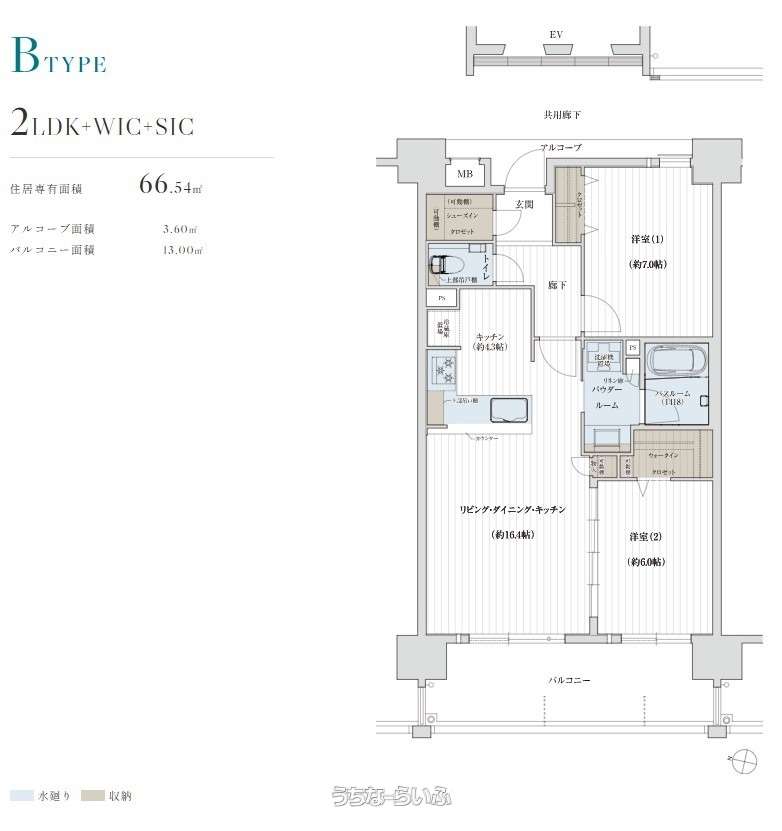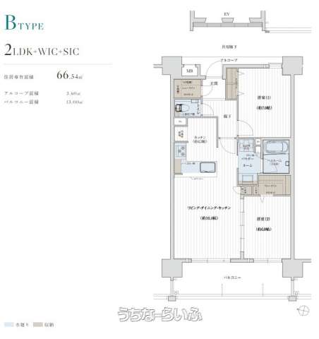 | 間取り | 2LDK ( 洋7 洋6 ※ウォークインクローゼット、シューズインクローゼット) | ||