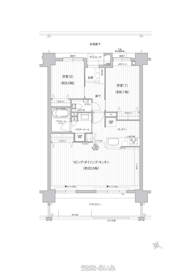 | 間取り | 2LDK ( 洋6.1 洋5) | ||