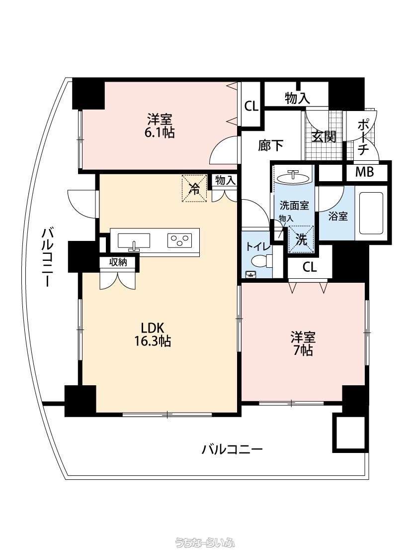| 間取り | 2LDK ( 洋7 洋6.1 LDK16.3 ※相違がある場合は現況優先とします。) | ||