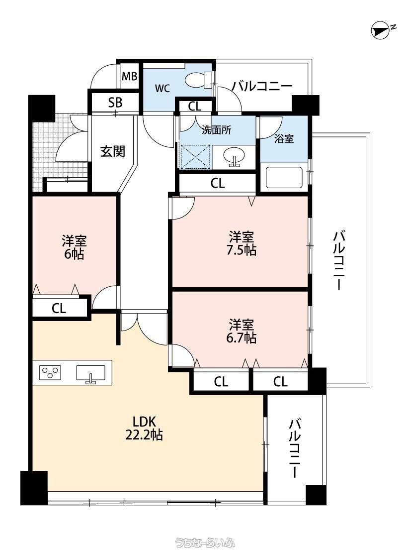 | 間取り | 3LDK ( 洋7.5 洋6.7 洋6 LDK22.2 ※相違がある場合は現況優先とします。) | ||