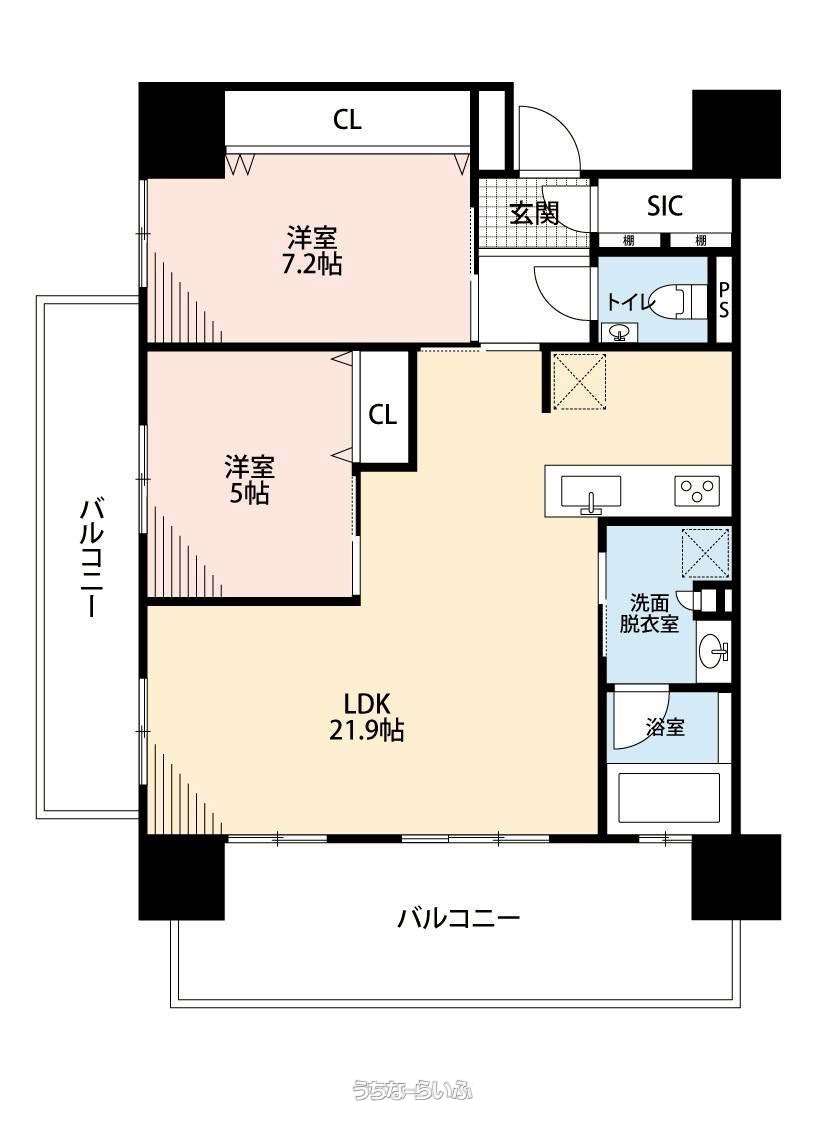 | 間取り | 2LDK ( 洋7.2 洋5 LDK22.4 ※相違がある場合は現況優先とします。) | ||