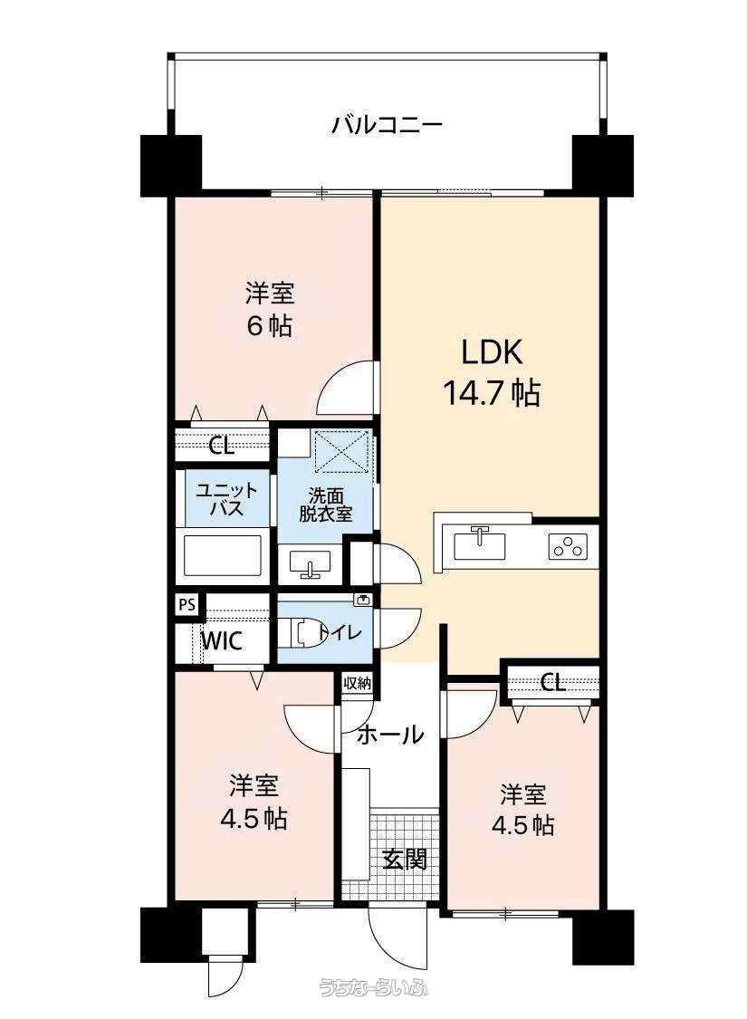 | 間取り | 3LDK ( 洋6 洋4.5 洋4.5 LDK14 ※相違がある場合は現況優先とします。) | ||