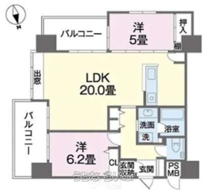 | 間取り | 2LDK ( 洋6.2 洋5 LDK20 ※相違がある場合は現況優先とします。) | ||