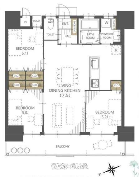 | 間取り | 3LDK ( 洋5.2 洋5.1 洋5 LDK17.5) | ||