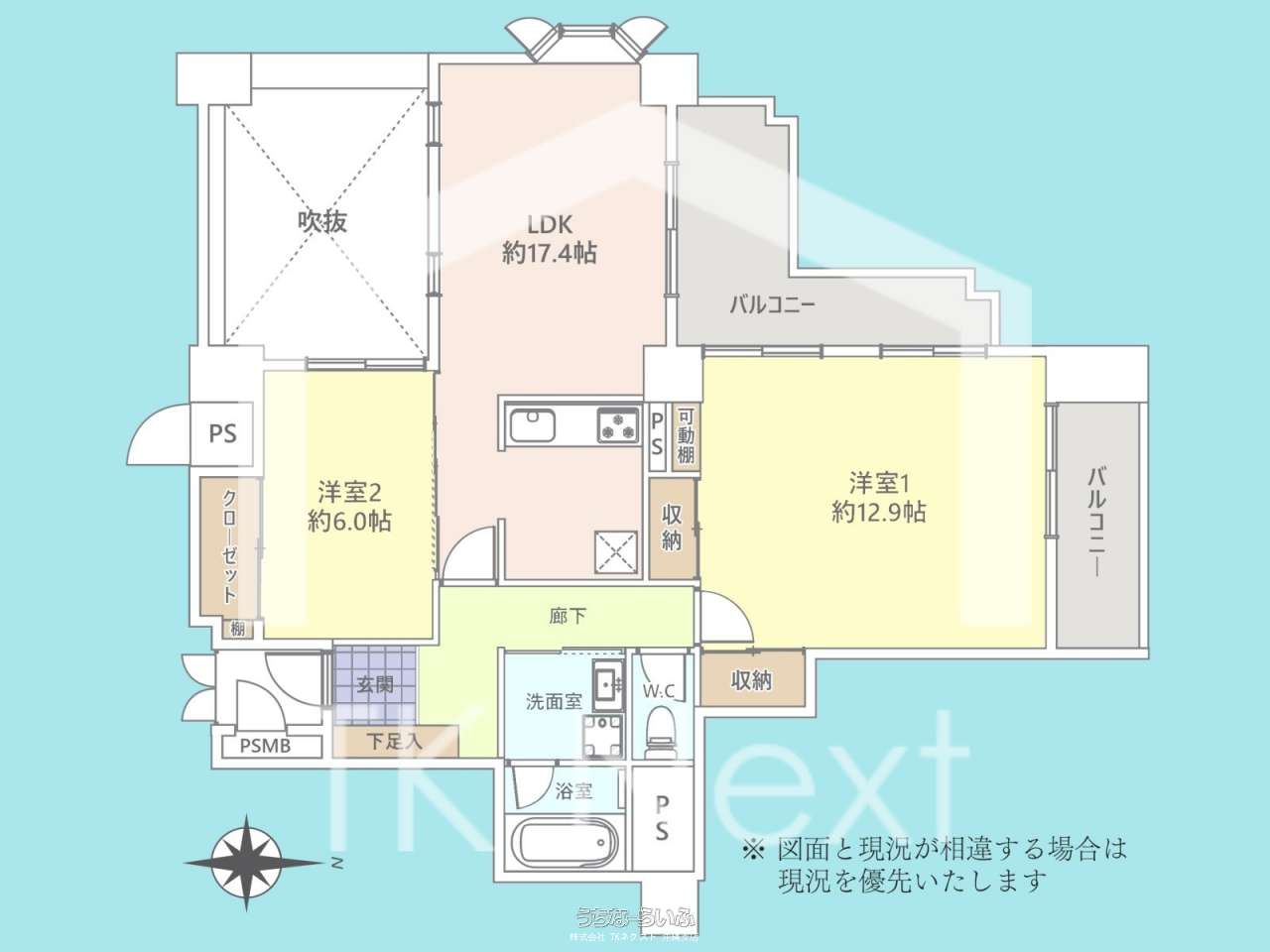 | 間取り | 2LDK ( 洋12.9 洋6 LDK17.4) | ||
