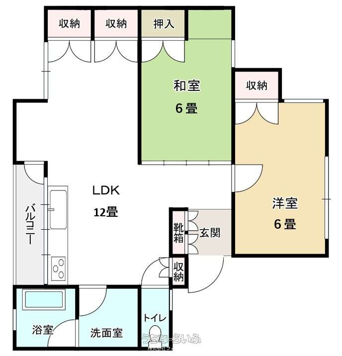 | 間取り | 2LDK ( 洋6 洋6 LDK12) | ||