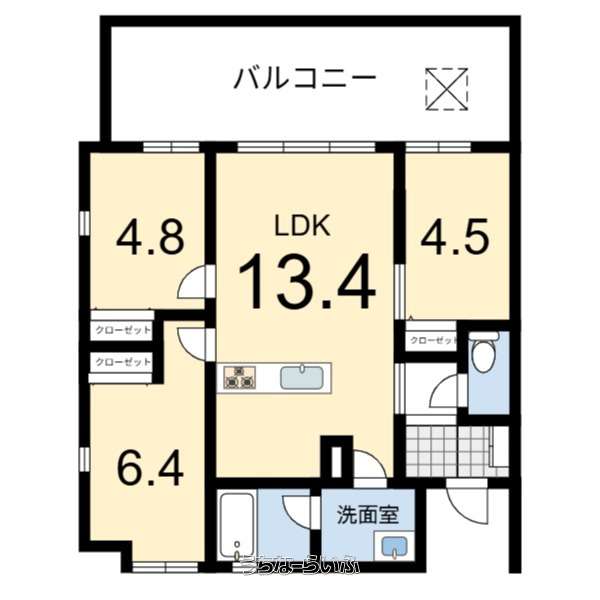 間取り | 3LDK ( 洋6.4 洋4.8 洋4.5 LDK13.4) | ||