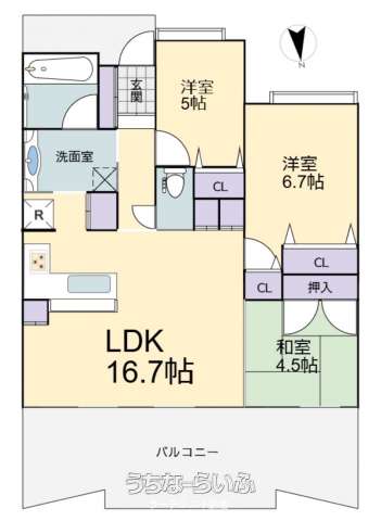 | 間取り | 3LDK ( 洋6.7 洋5 和4.5 LDK16.7) | ||