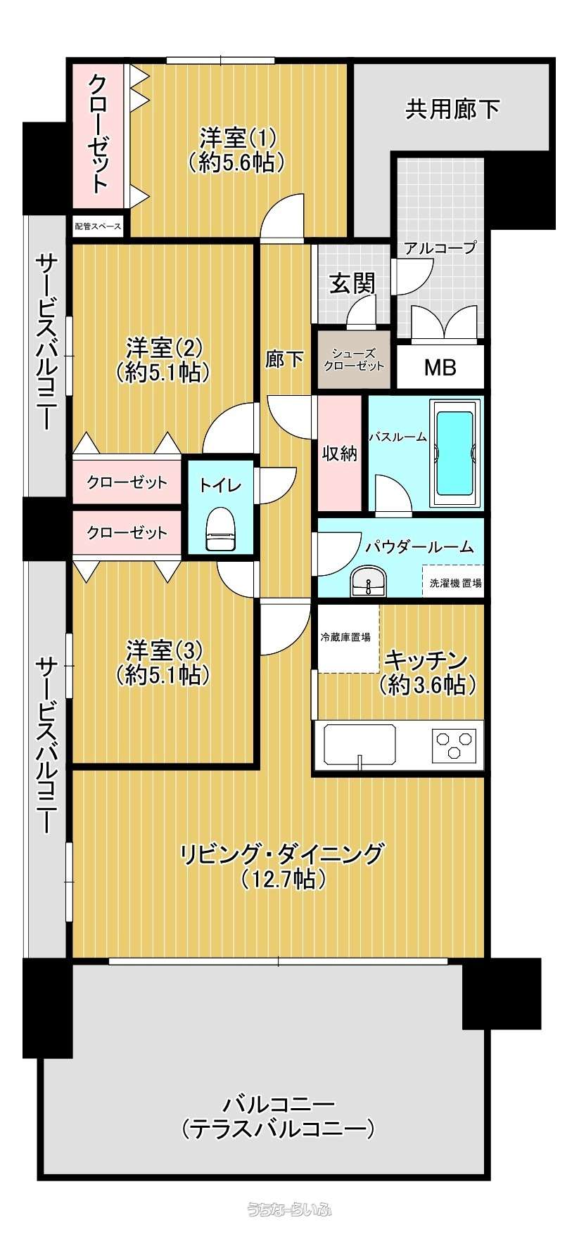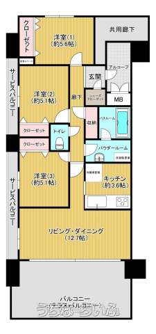 | 間取り | 3LDK ( 洋5.1 洋5.1 洋5.6 LDK16.3) | ||
