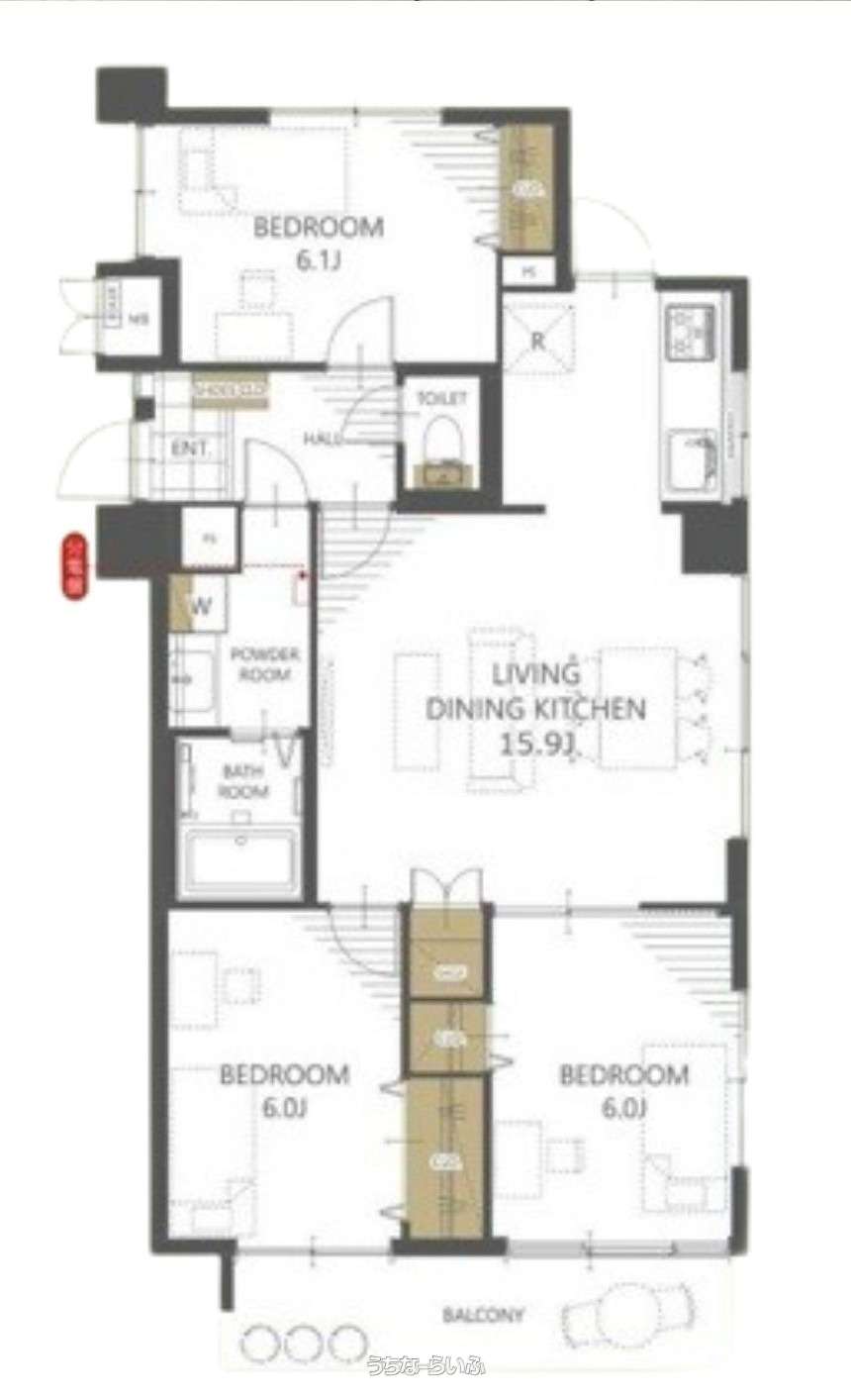 | 間取り | 3LDK ( 洋6.4 洋6 洋6 LDK15.9) | ||