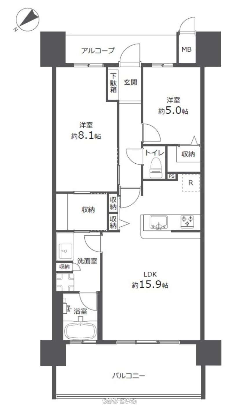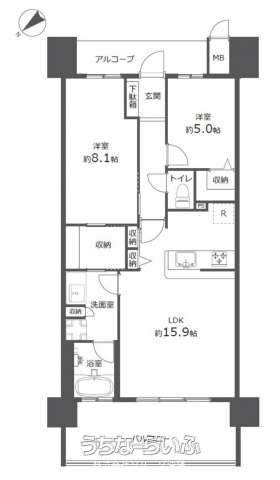 | 間取り | 2LDK ( 洋8.1 洋5 LDK15.9 ※ウォークスルー収納、ウォークインクローゼット) | ||