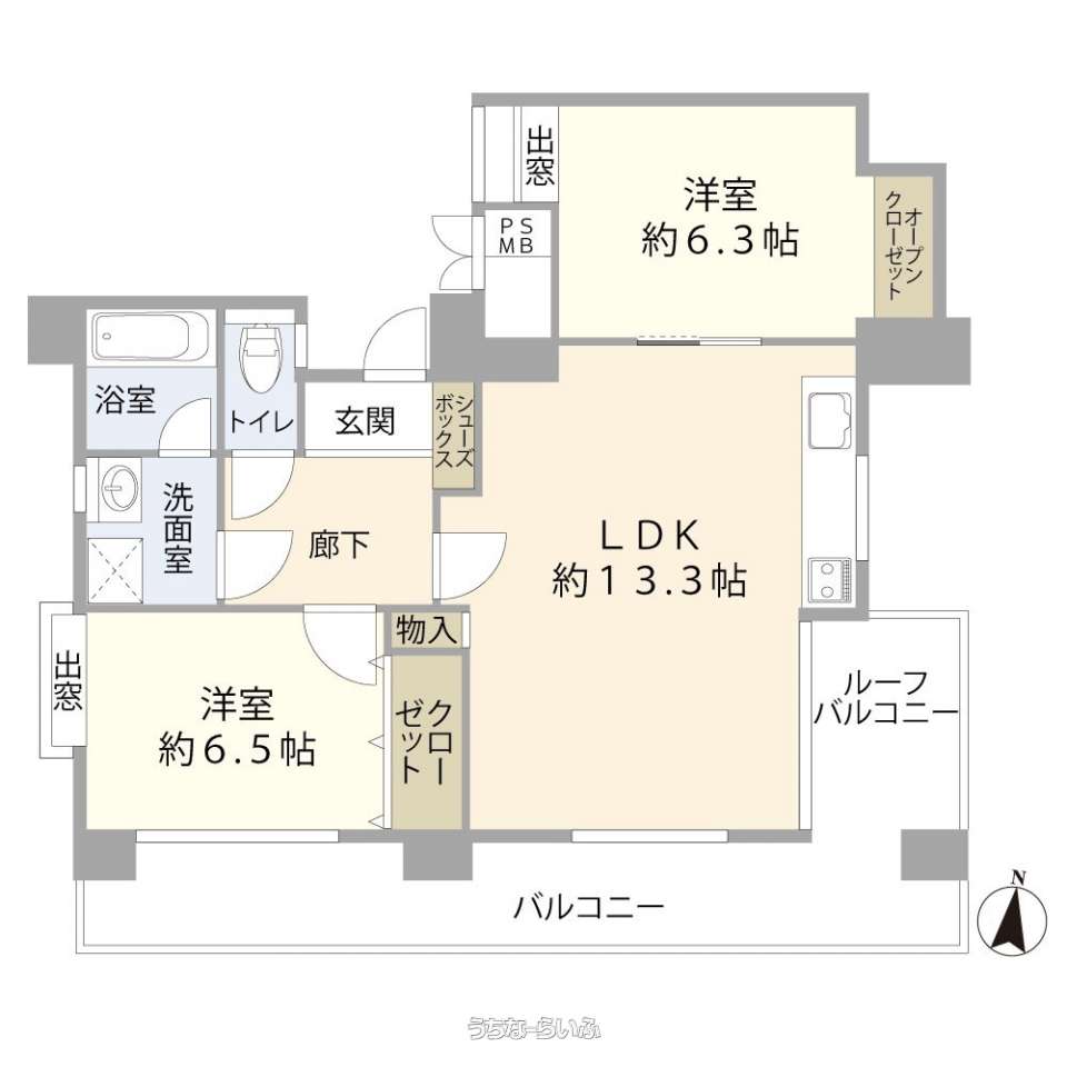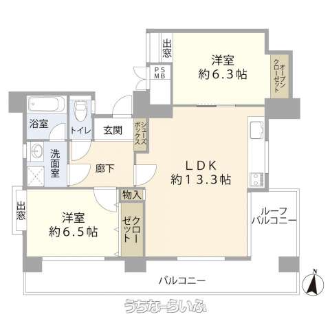 | 間取り | 2LDK ( 洋6.5 洋6.3 LDK13.3) | ||