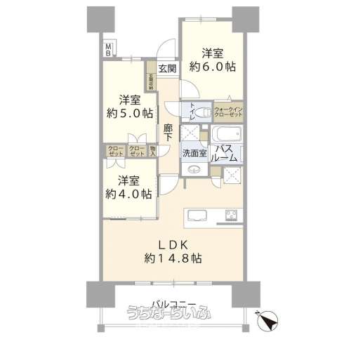 | 間取り | 3LDK ( 洋6 洋5 洋4 LDK14.8) | ||