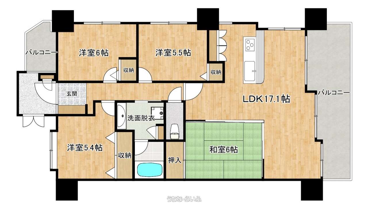 | 間取り | 4LDK ( 洋6 洋5.5 洋5.4 和6 LDK17.1) | ||
