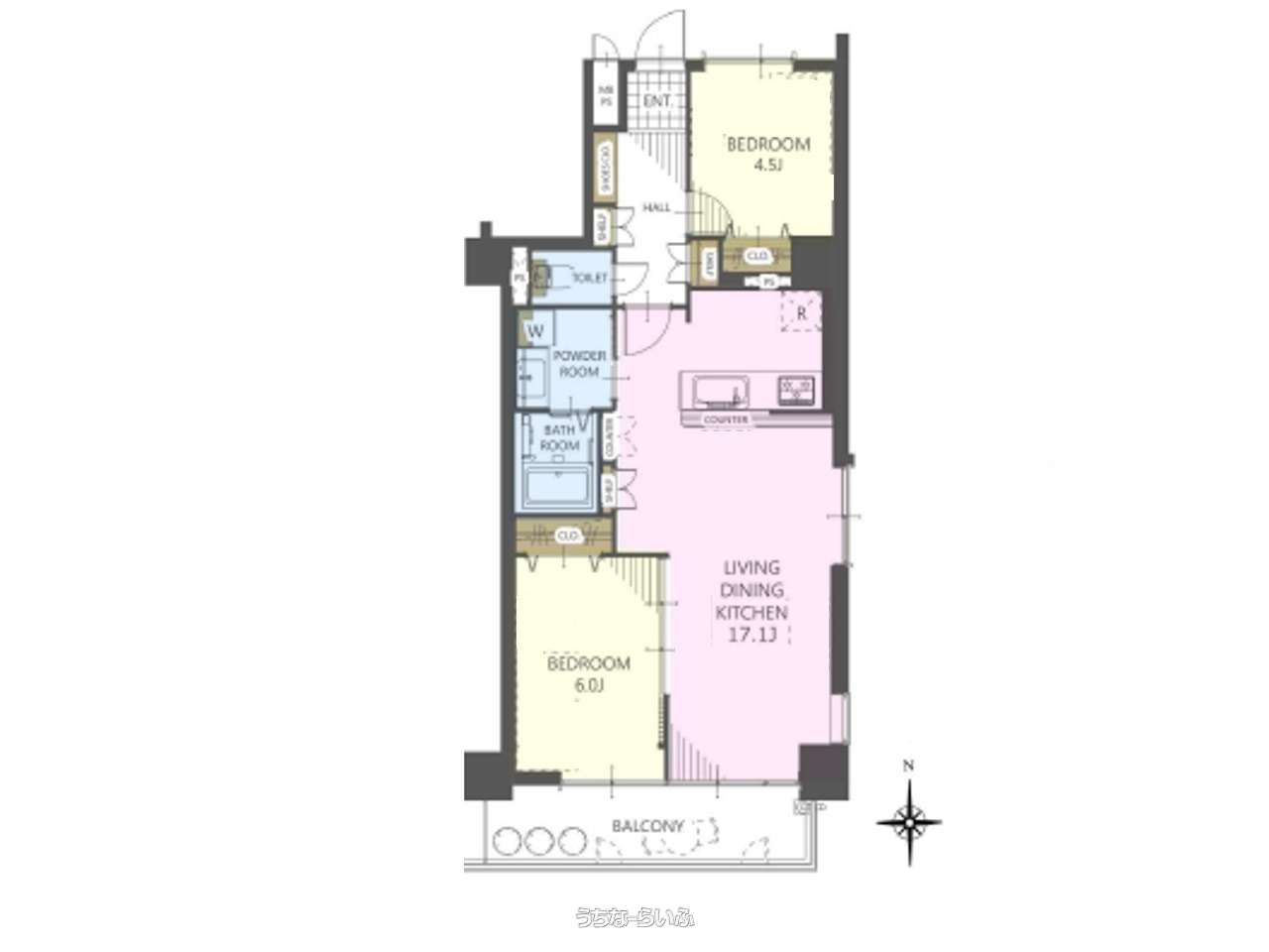 | 間取り | 2LDK ( 洋4.5 洋6 LDK17.1) | ||