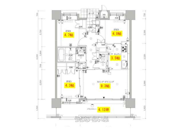 | 間取り | 3LDK ( 洋4.8 洋4.7 洋4.3 LDK13.6) | ||