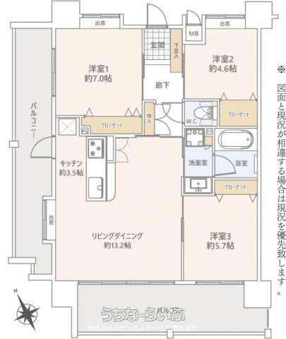 | 間取り | 3LDK ( 洋7 洋4.6 洋5.7 LDK16.7) | ||
