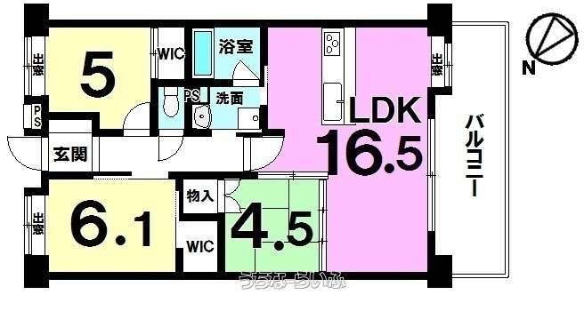 | 間取り | 3LDK ( 洋6.1 洋5 和4.5 LDK16.5) | ||