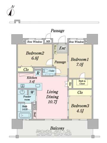 | 間取り | 3LDK ( 洋7 洋6.8 洋4.5 LDK14.1) | ||