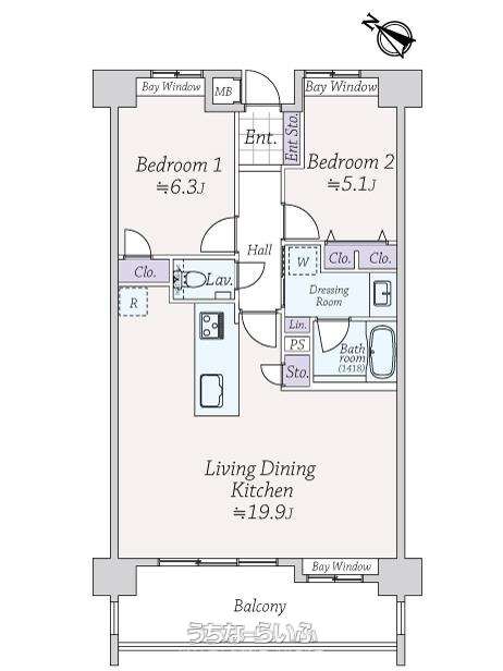 間取り | 2LDK ( 洋6.3 洋5.1 LDK19.9) | ||