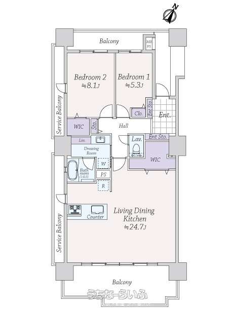 | 間取り | 2LDK ( 洋8.1 洋5.3 LDK24.7) | ||
