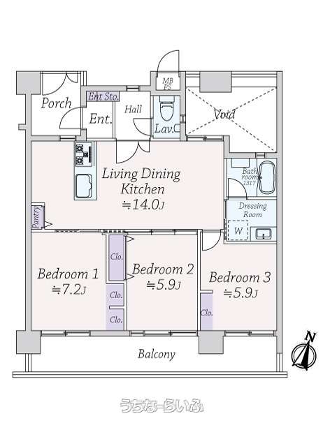 | 間取り | 3LDK ( 洋5.7 洋5.3 洋4.9 LDK14) | ||