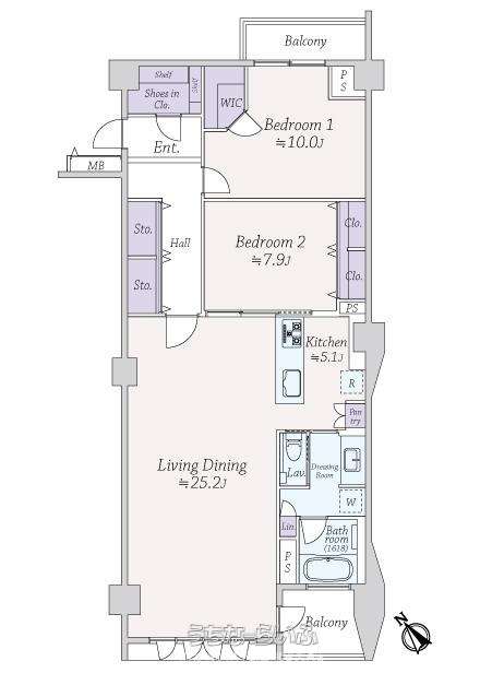 | 間取り | 2LDK ( 洋10 洋7.9 LDK30.3 ※ウォークインクロゼット、シューズクローク、ビューバス) | ||