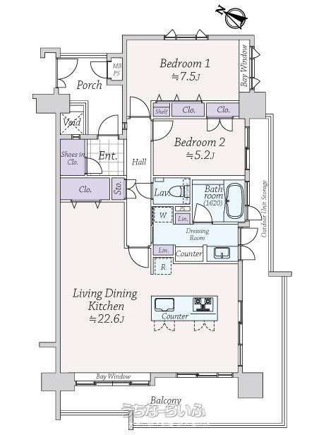 | 間取り | 2LDK ( 洋7.5 洋5.2 LDK22.6) | ||