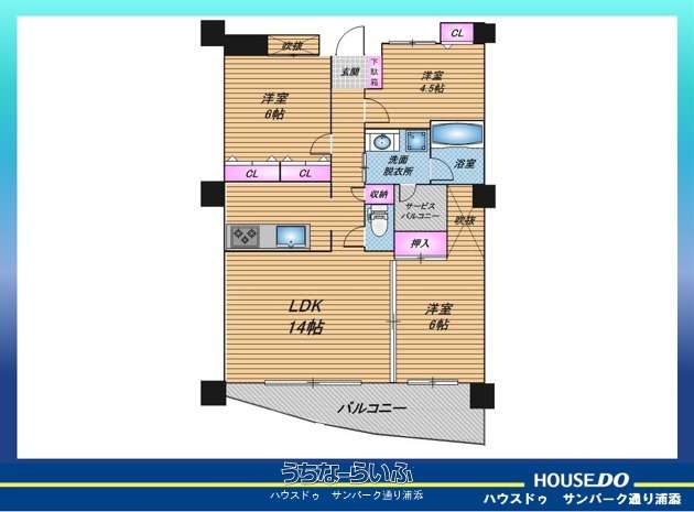 | 間取り | 3LDK ( 洋6 洋6 洋4.5 LDK14) | ||