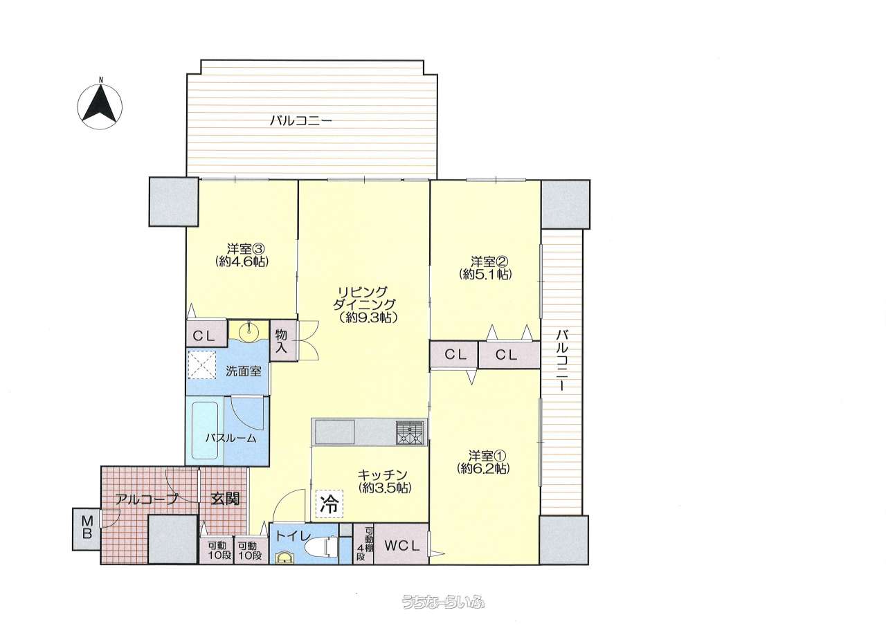 | 間取り | 3LDK ( 洋6.2 洋5.1 洋4.6 LDK12.8) | ||