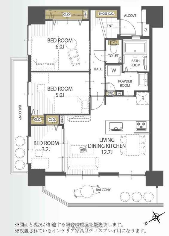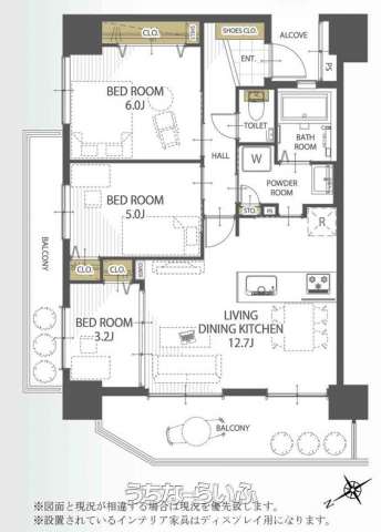 | 間取り | 3LDK ( 洋6 洋5 洋3.2 LDK12.7 ※リフォーム済み) | ||