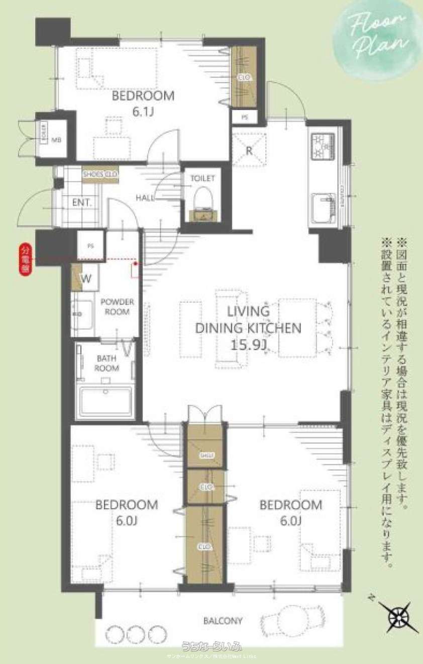 | 間取り | 3LDK ( 洋6.1 洋6 洋6 LDK15.9) | ||