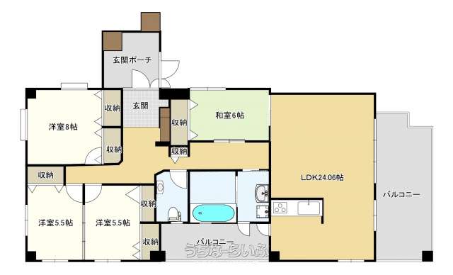 | 間取り | 4LDK ( 洋8 洋5.5 洋5.5 和6 LDK24) | ||