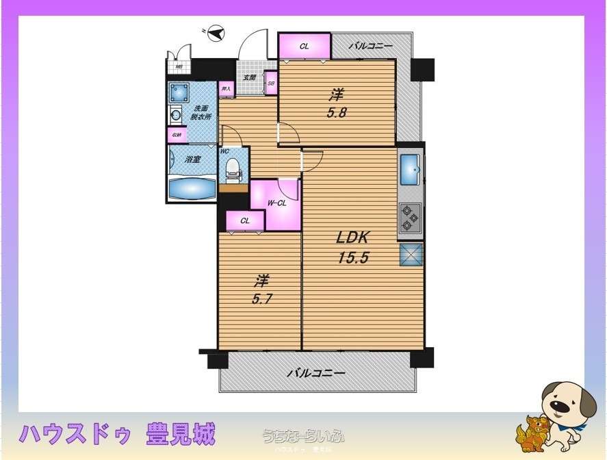 | 間取り | 2LDK ( ※LDK15.5 洋5.8/5.7) | ||