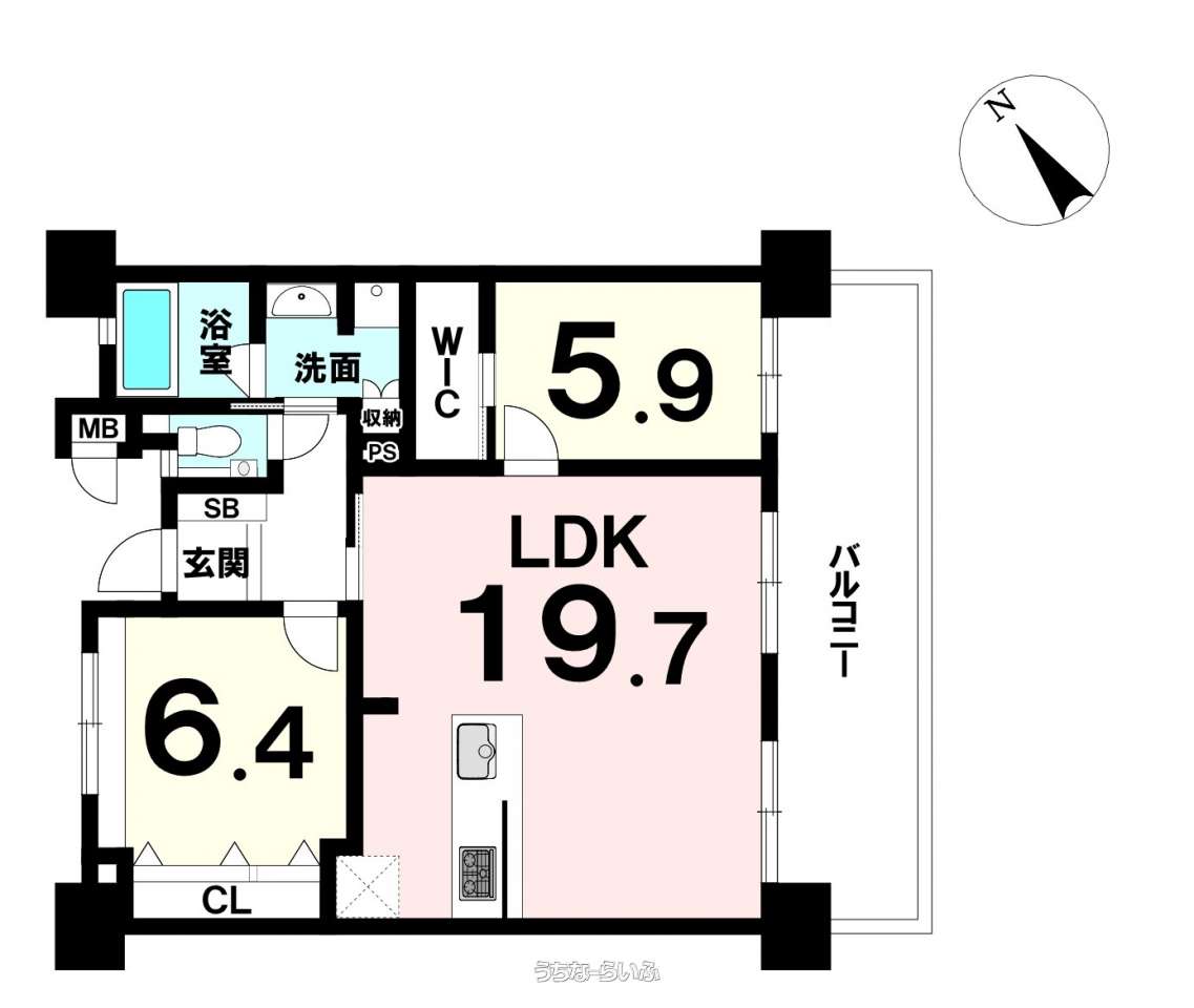 | 間取り | 2LDK ( 洋6.4 洋5.9 LDK19.7) | ||